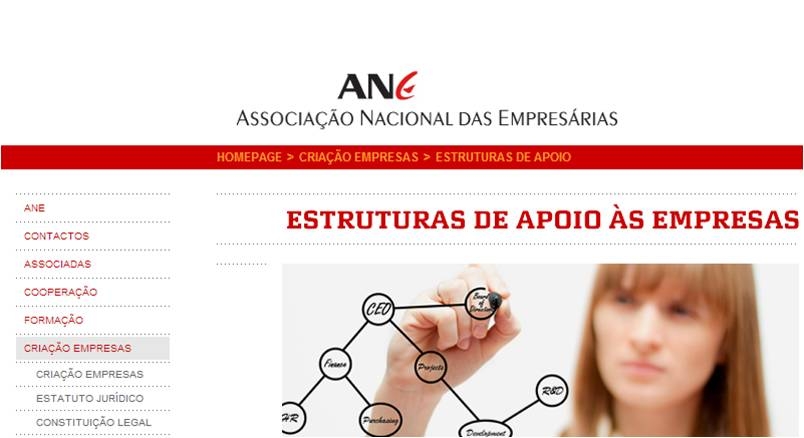 O site da Associação Nacional de Empresárias (www.ane.pt) contém bastante informação útil no que respeita a apoios (juridico, legal, etc..) e incentivos na criação de empresas.